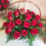 Корзина из красных роз с зеленью - подарок который стоит своих денег. На создание такой корзины флорист тратит до 1.5 часа времени. Поэтому заказывать ее лучше заблаговременно.